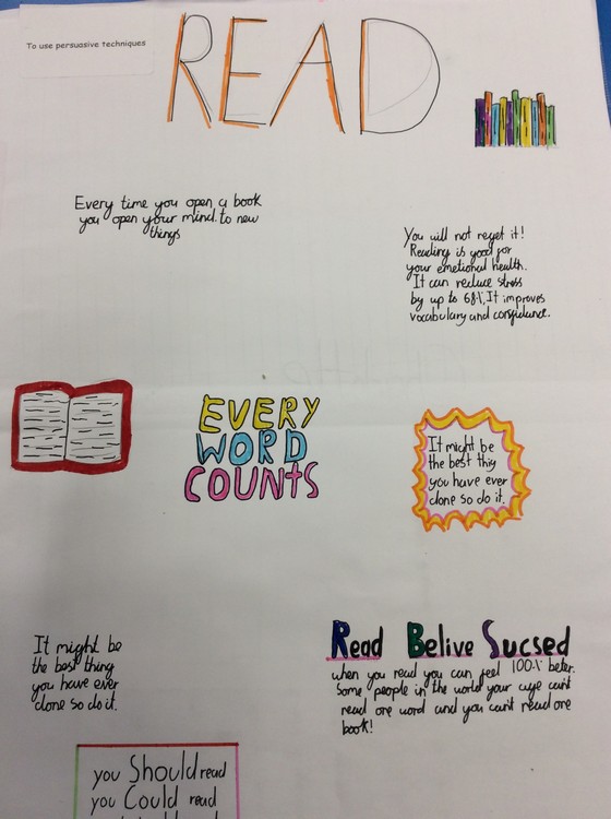 In literacy the children have been learning to use persuasive language and made persuasive posters on a topic of their choice. You will see they have used